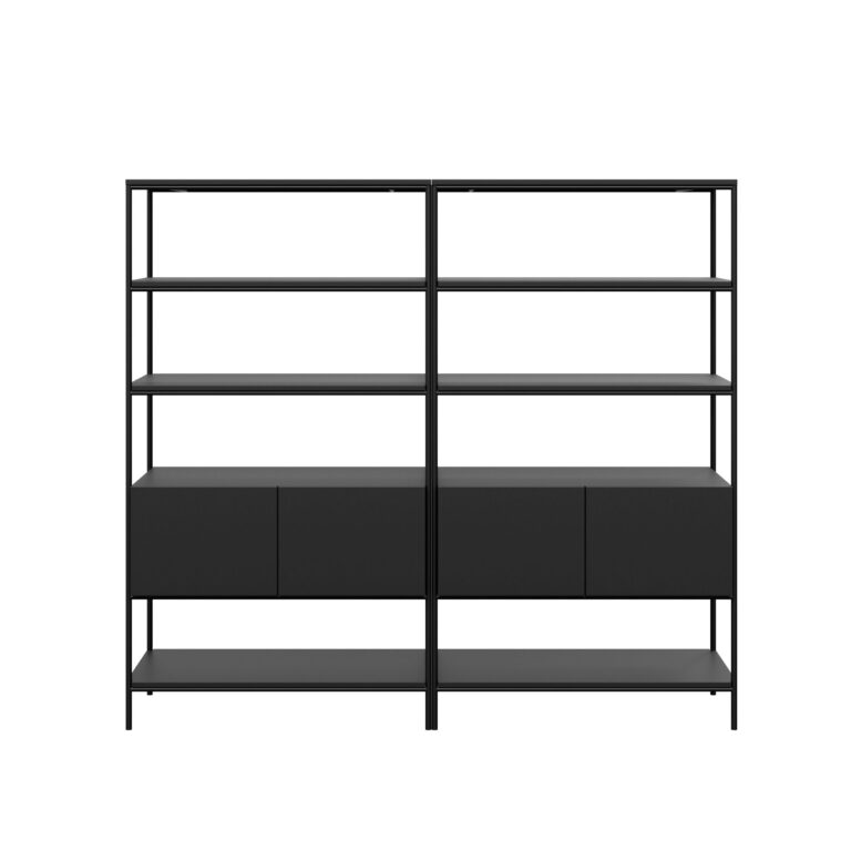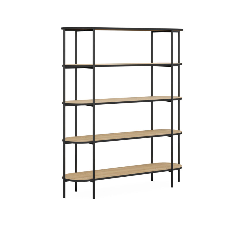 Accessible shelving and display units that offer flexible storage with visual lightness.